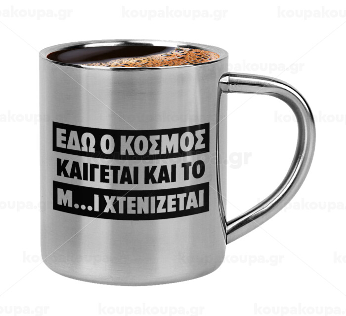 Εδώ ο κόσμος καίγεται και το Μ....Ι χτενίζεται, Double-wall metal cup for espresso (220ml)