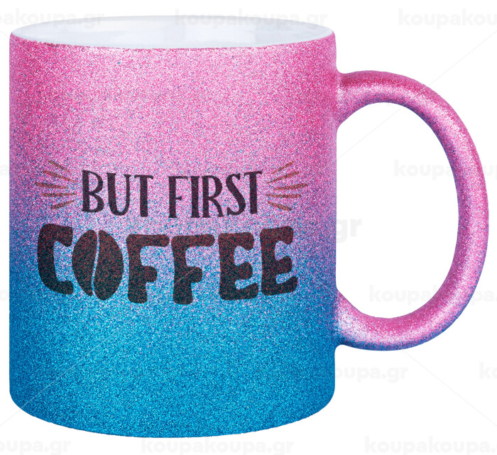 But first Coffee, Κούπα Χρυσή/Μπλε Glitter, κεραμική, 330ml