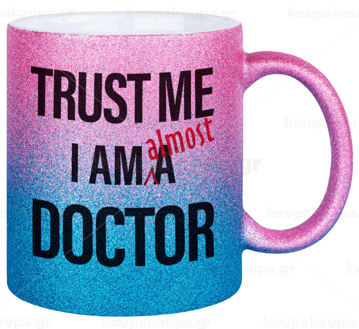 Trust me, i am (almost) Doctor, Κούπα Χρυσή/Μπλε Glitter, κεραμική, 330ml