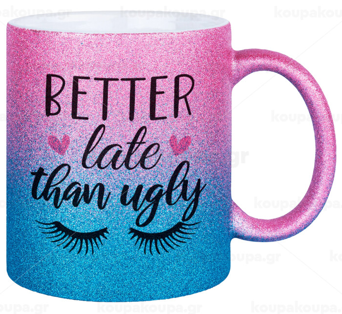 Better Late than ugly hearts, Κούπα Χρυσή/Μπλε Glitter, κεραμική, 330ml