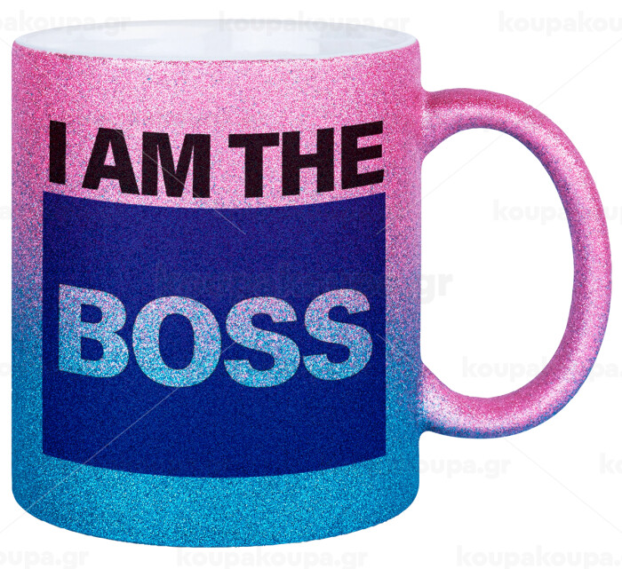 I am the Boss, Κούπα Χρυσή/Μπλε Glitter, κεραμική, 330ml
