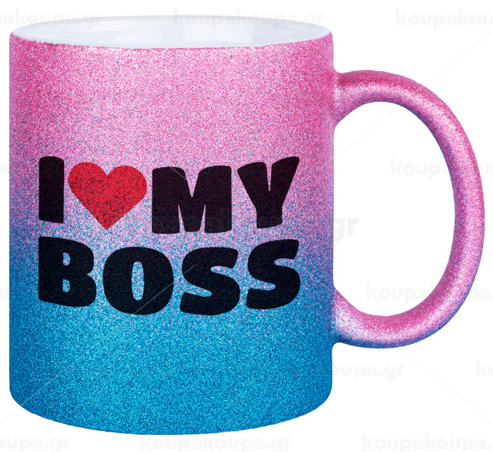 I LOVE MY BOSS, Κούπα Χρυσή/Μπλε Glitter, κεραμική, 330ml