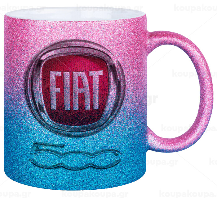 FIAT 500, Κούπα Χρυσή/Μπλε Glitter, κεραμική, 330ml
