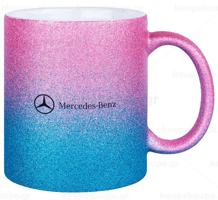 Mercedes small logo, Κούπα Χρυσή/Μπλε Glitter, κεραμική, 330ml