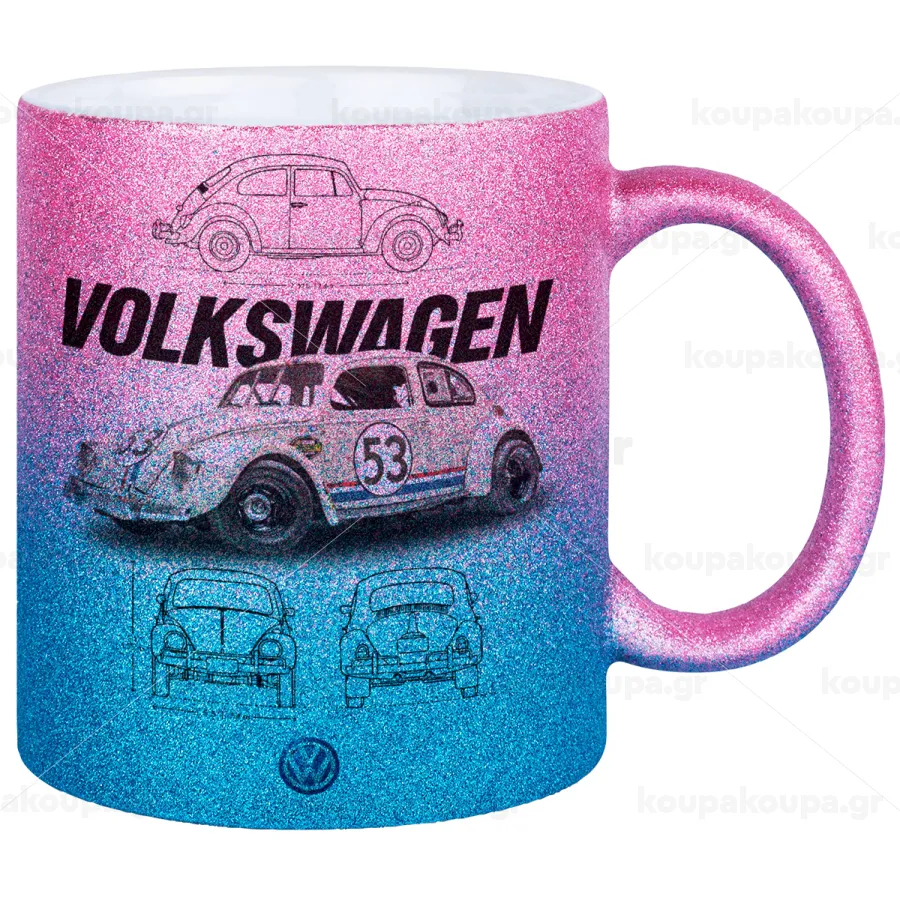 Volkswagen Beetle, Κούπα Χρυσή/Μπλε Glitter, κεραμική, 330ml