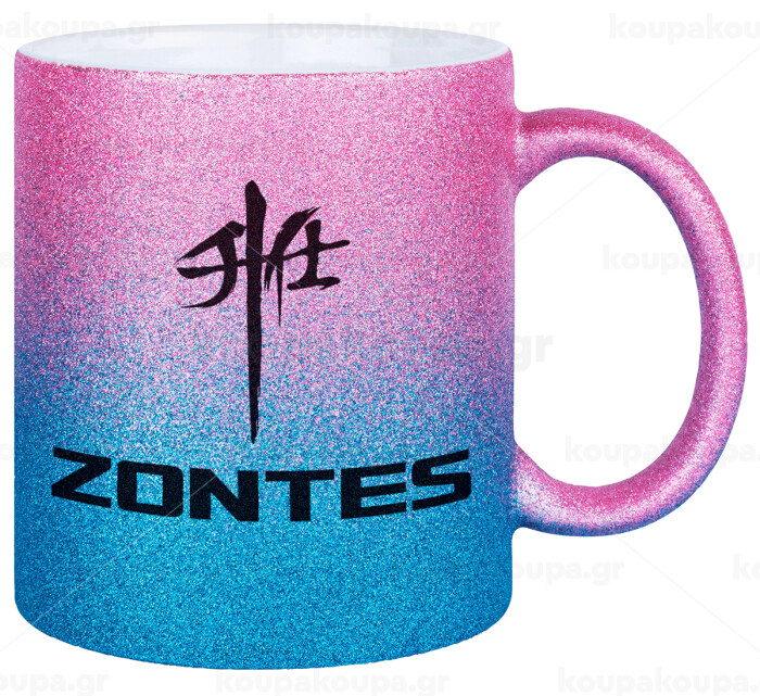 ZONTES, Κούπα Χρυσή/Μπλε Glitter, κεραμική, 330ml