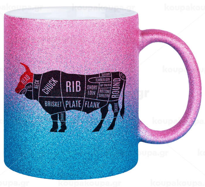 Diagrams for butcher shop, Κούπα Χρυσή/Μπλε Glitter, κεραμική, 330ml