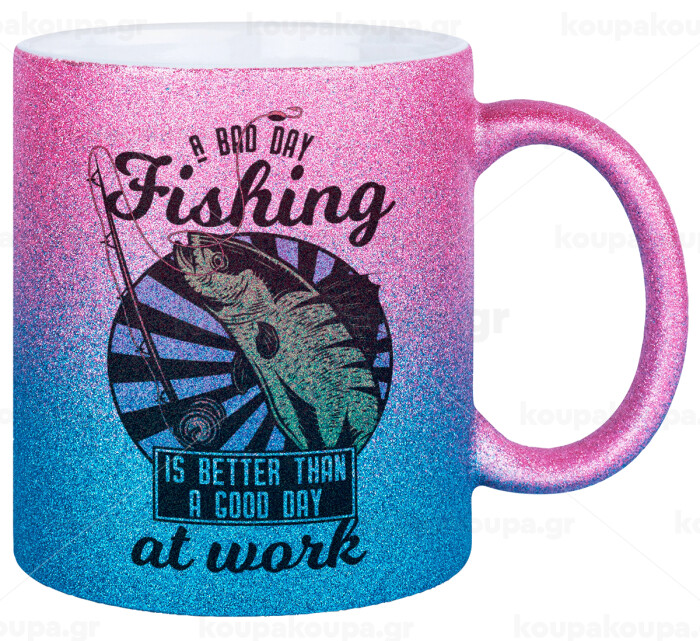 A bad day FISHING is better than a good day at work, Κούπα Χρυσή/Μπλε Glitter, κεραμική, 330ml