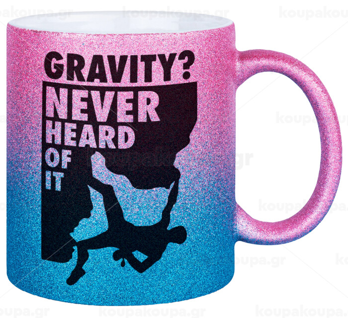 Gravity? Never heard of that!, Κούπα Χρυσή/Μπλε Glitter, κεραμική, 330ml