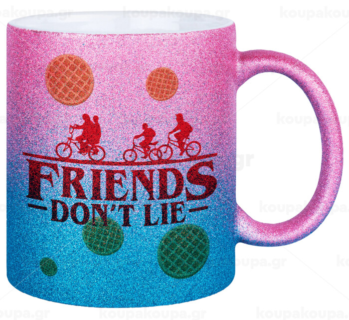Friends Don't Lie, Stranger Things, Κούπα Χρυσή/Μπλε Glitter, κεραμική, 330ml