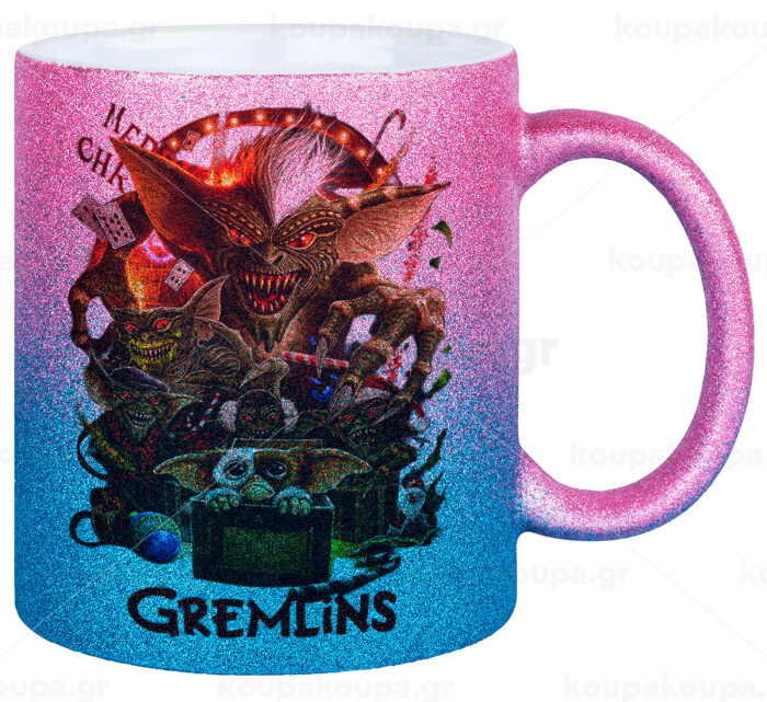 Gremlins, Κούπα Χρυσή/Μπλε Glitter, κεραμική, 330ml