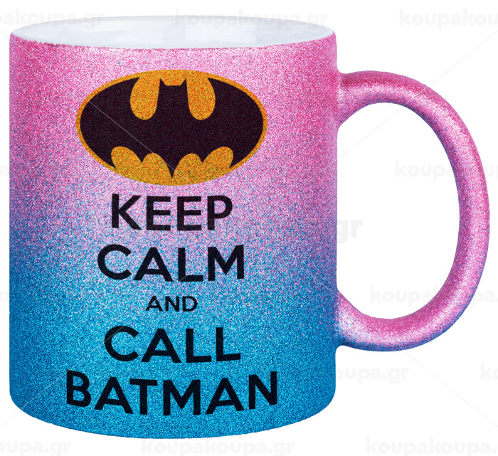 KEEP CALM & Call BATMAN, Κούπα Χρυσή/Μπλε Glitter, κεραμική, 330ml