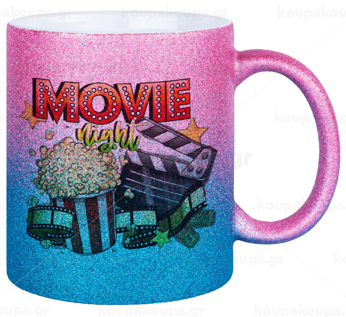 Movie night, Κούπα Χρυσή/Μπλε Glitter, κεραμική, 330ml