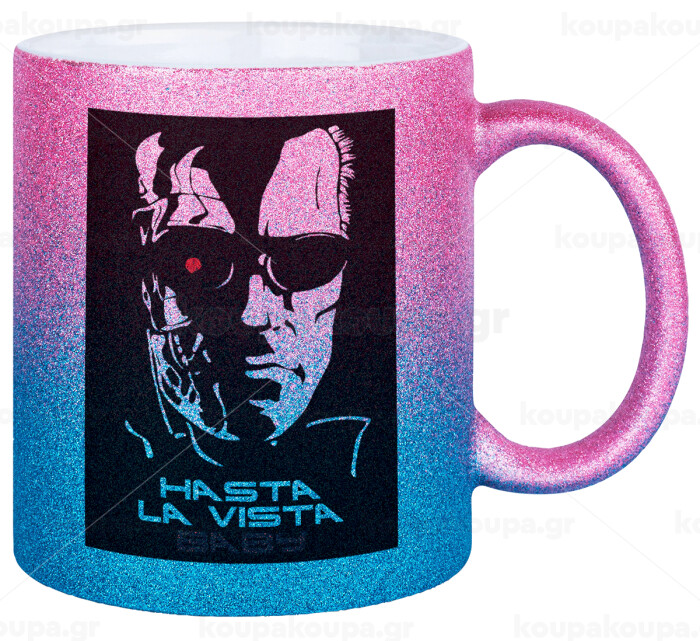 Terminator Hasta La Vista, Κούπα Χρυσή/Μπλε Glitter, κεραμική, 330ml