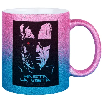 Terminator Hasta La Vista, Κούπα Χρυσή/Μπλε Glitter, κεραμική, 330ml