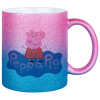 Πέππα το γουρουνάκι μπλε με όνομα, Κούπα Χρυσή/Μπλε Glitter, κεραμική, 330ml