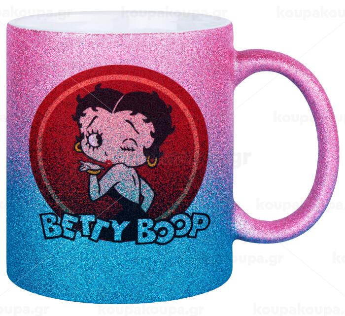 Betty Boop kiss, Κούπα Χρυσή/Μπλε Glitter, κεραμική, 330ml