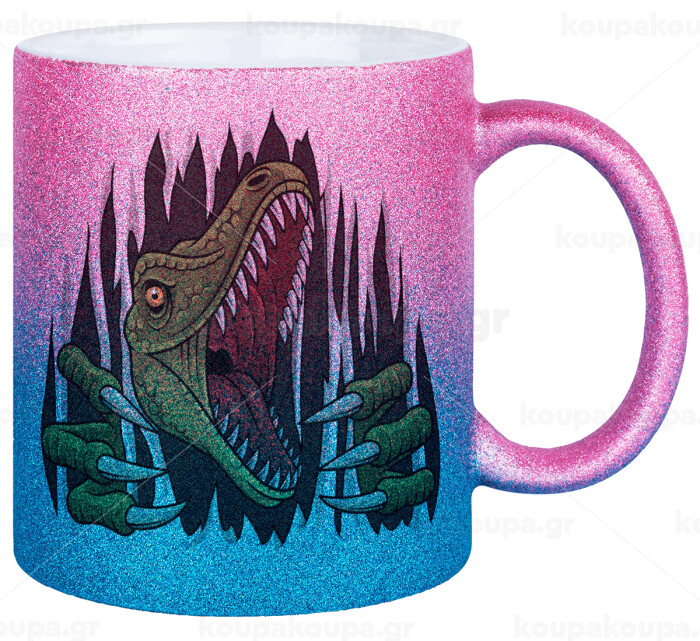 Dinosaur scratch, Κούπα Χρυσή/Μπλε Glitter, κεραμική, 330ml