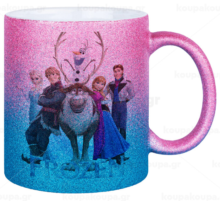Frozen, Κούπα Χρυσή/Μπλε Glitter, κεραμική, 330ml