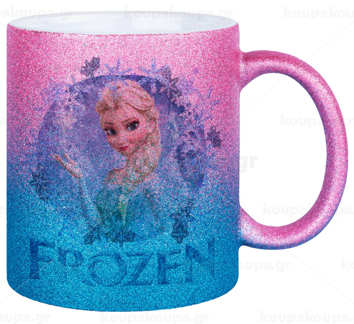 Frozen Elsa, Κούπα Χρυσή/Μπλε Glitter, κεραμική, 330ml