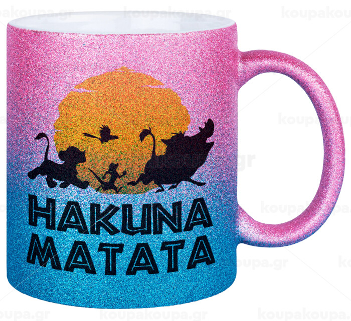 Hakuna Matata, Κούπα Χρυσή/Μπλε Glitter, κεραμική, 330ml