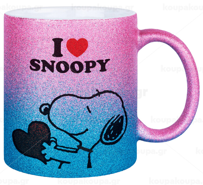 I LOVE SNOOPY, Κούπα Χρυσή/Μπλε Glitter, κεραμική, 330ml