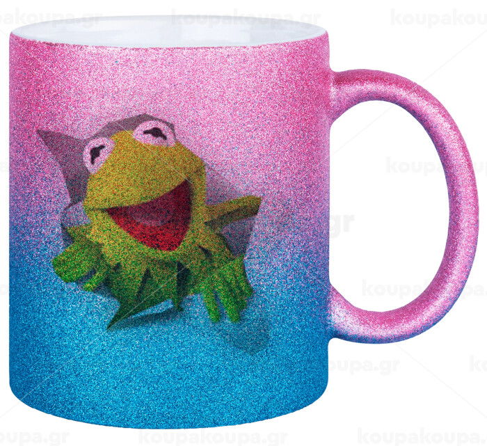 Kermit the frog, Κούπα Χρυσή/Μπλε Glitter, κεραμική, 330ml