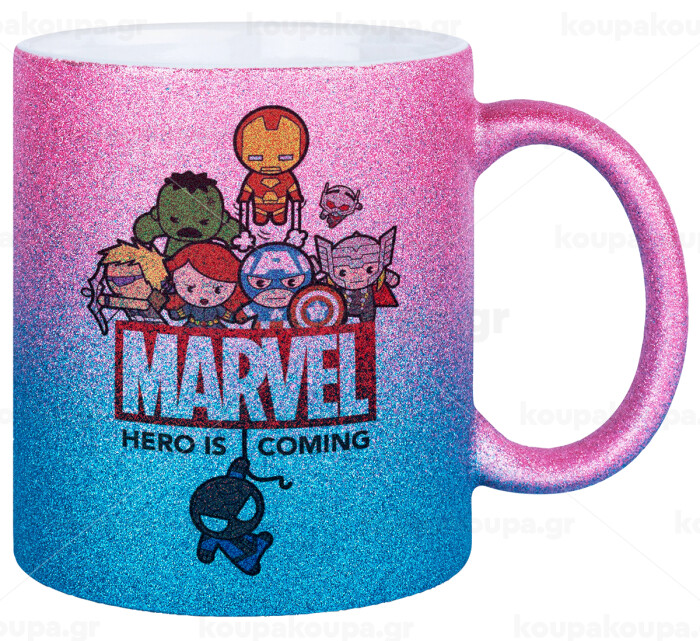MARVEL, Κούπα Χρυσή/Μπλε Glitter, κεραμική, 330ml