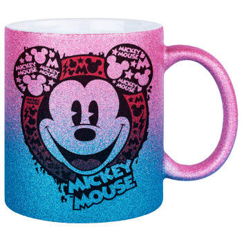 Mickey Mouse, Κούπα Χρυσή/Μπλε Glitter, κεραμική, 330ml