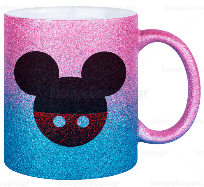 Mickey head, Κούπα Χρυσή/Μπλε Glitter, κεραμική, 330ml