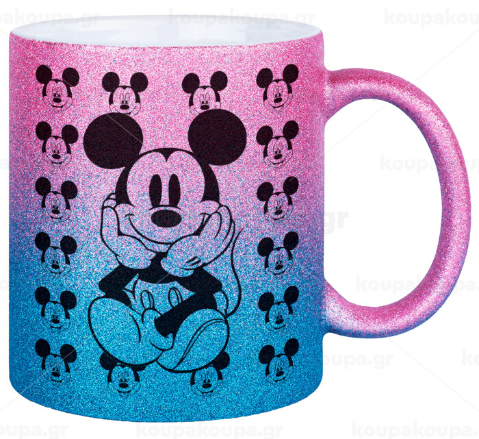 Mickey, Κούπα Χρυσή/Μπλε Glitter, κεραμική, 330ml
