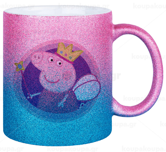 Peppa pig Queen, Κούπα Χρυσή/Μπλε Glitter, κεραμική, 330ml
