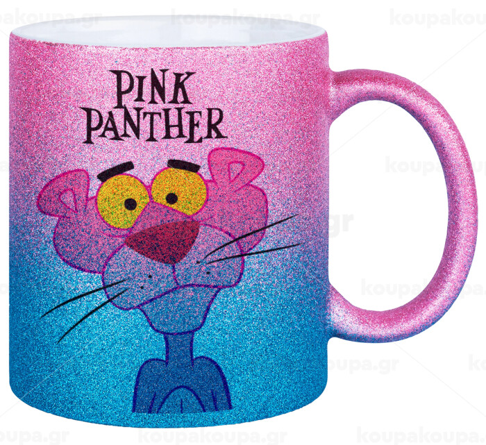 Pink Panther cartoon, Κούπα Χρυσή/Μπλε Glitter, κεραμική, 330ml
