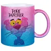 Pink Panther cartoon, Κούπα Χρυσή/Μπλε Glitter, κεραμική, 330ml