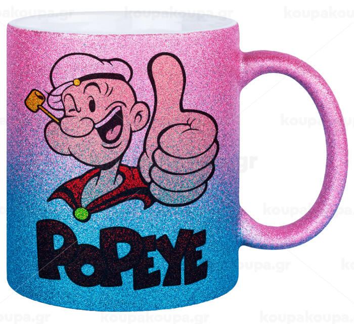 Popeye the sailor man, Κούπα Χρυσή/Μπλε Glitter, κεραμική, 330ml