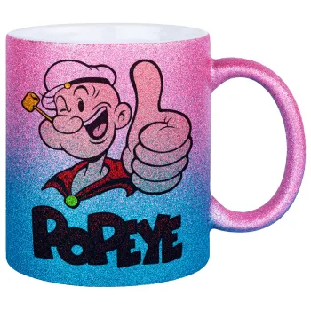 Popeye the sailor man, Κούπα Χρυσή/Μπλε Glitter, κεραμική, 330ml