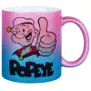 Popeye the sailor man, Κούπα Χρυσή/Μπλε Glitter, κεραμική, 330ml