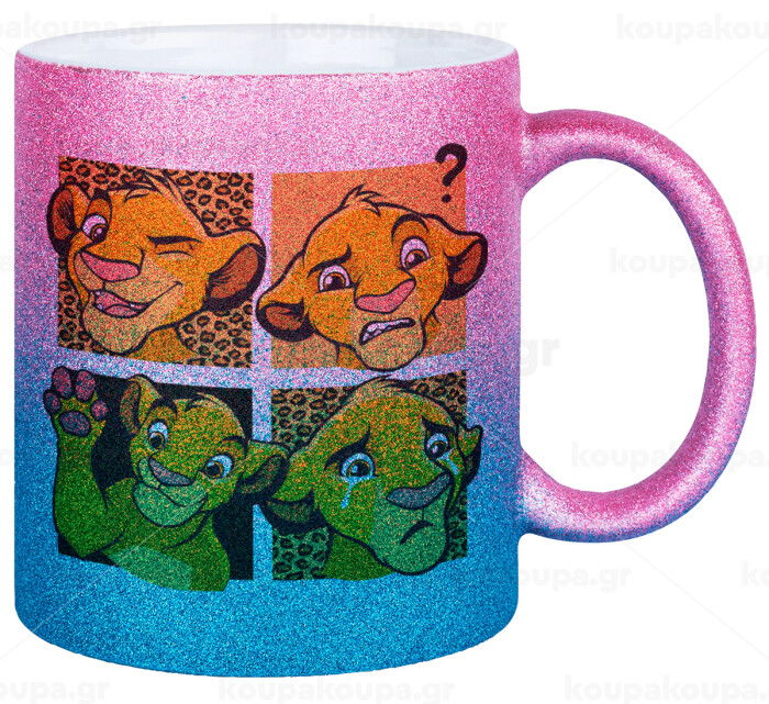 Simba, lion king, Κούπα Χρυσή/Μπλε Glitter, κεραμική, 330ml