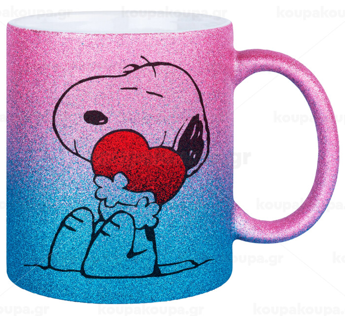 Snoopy, Κούπα Χρυσή/Μπλε Glitter, κεραμική, 330ml