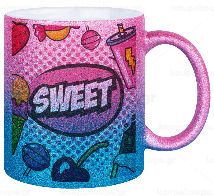 SWEET, Κούπα Χρυσή/Μπλε Glitter, κεραμική, 330ml