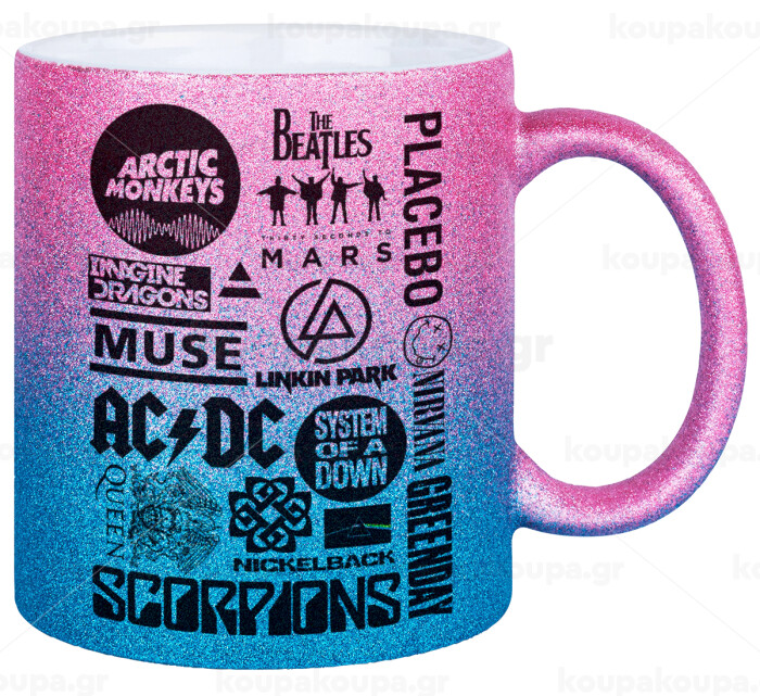 Best Rock Bands Collection, Κούπα Χρυσή/Μπλε Glitter, κεραμική, 330ml