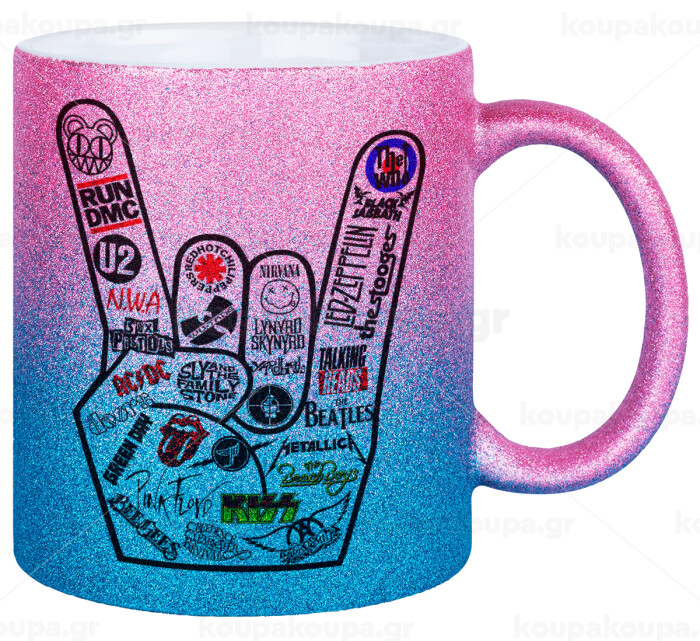 Best Rock Bands hand, Κούπα Χρυσή/Μπλε Glitter, κεραμική, 330ml
