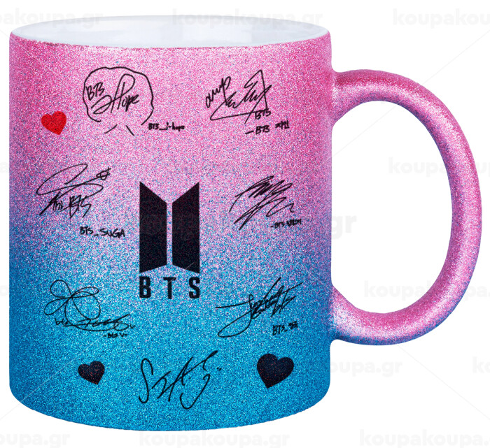 BTS signatures, Κούπα Χρυσή/Μπλε Glitter, κεραμική, 330ml
