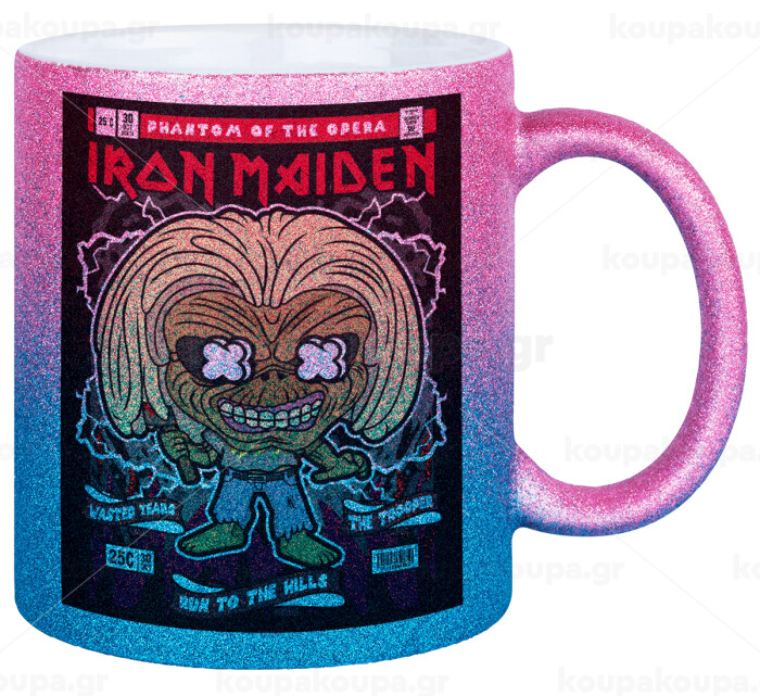 Iron maiden (eddie), Κούπα Χρυσή/Μπλε Glitter, κεραμική, 330ml