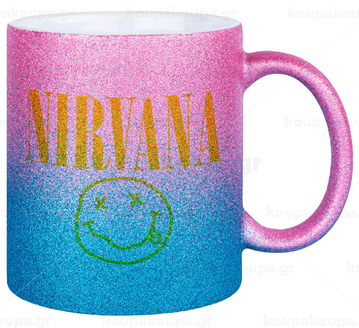 Nirvana, Κούπα Χρυσή/Μπλε Glitter, κεραμική, 330ml