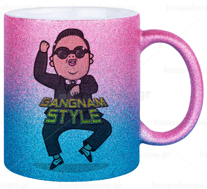 PSY - GANGNAM STYLE, Κούπα Χρυσή/Μπλε Glitter, κεραμική, 330ml