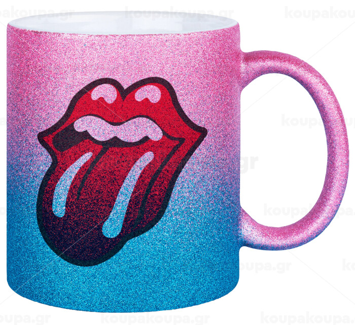 Rolling Stones Kiss, Κούπα Χρυσή/Μπλε Glitter, κεραμική, 330ml