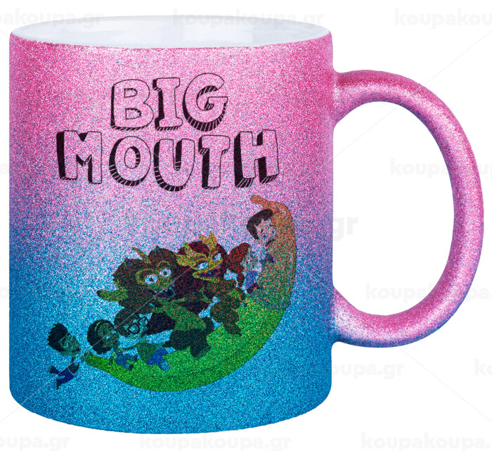 Big mouth, Κούπα Χρυσή/Μπλε Glitter, κεραμική, 330ml