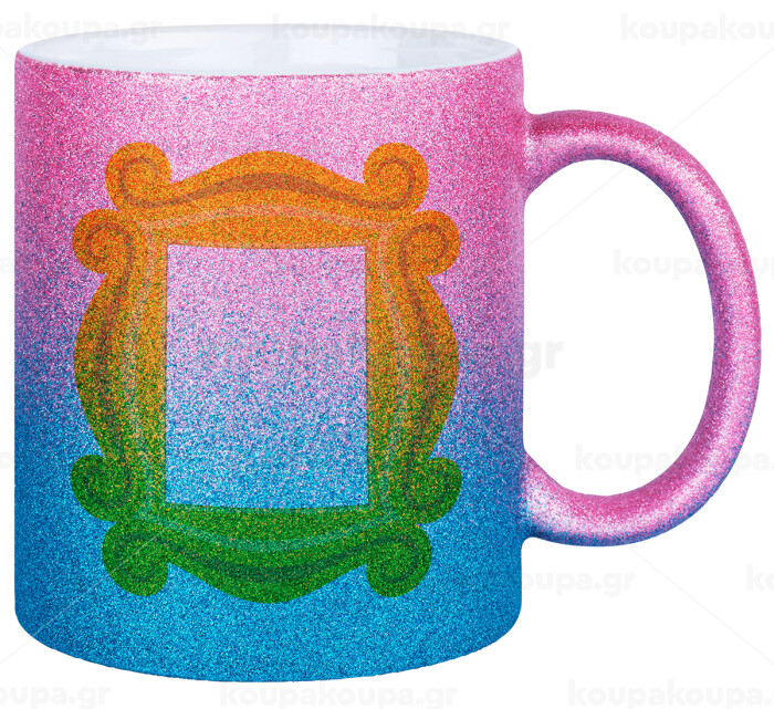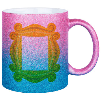 Friends frame, Κούπα Χρυσή/Μπλε Glitter, κεραμική, 330ml