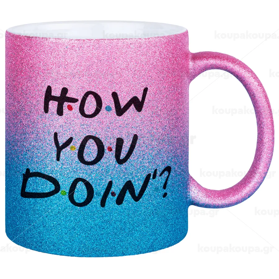 Friends How You Doin'?, Κούπα Χρυσή/Μπλε Glitter, κεραμική, 330ml